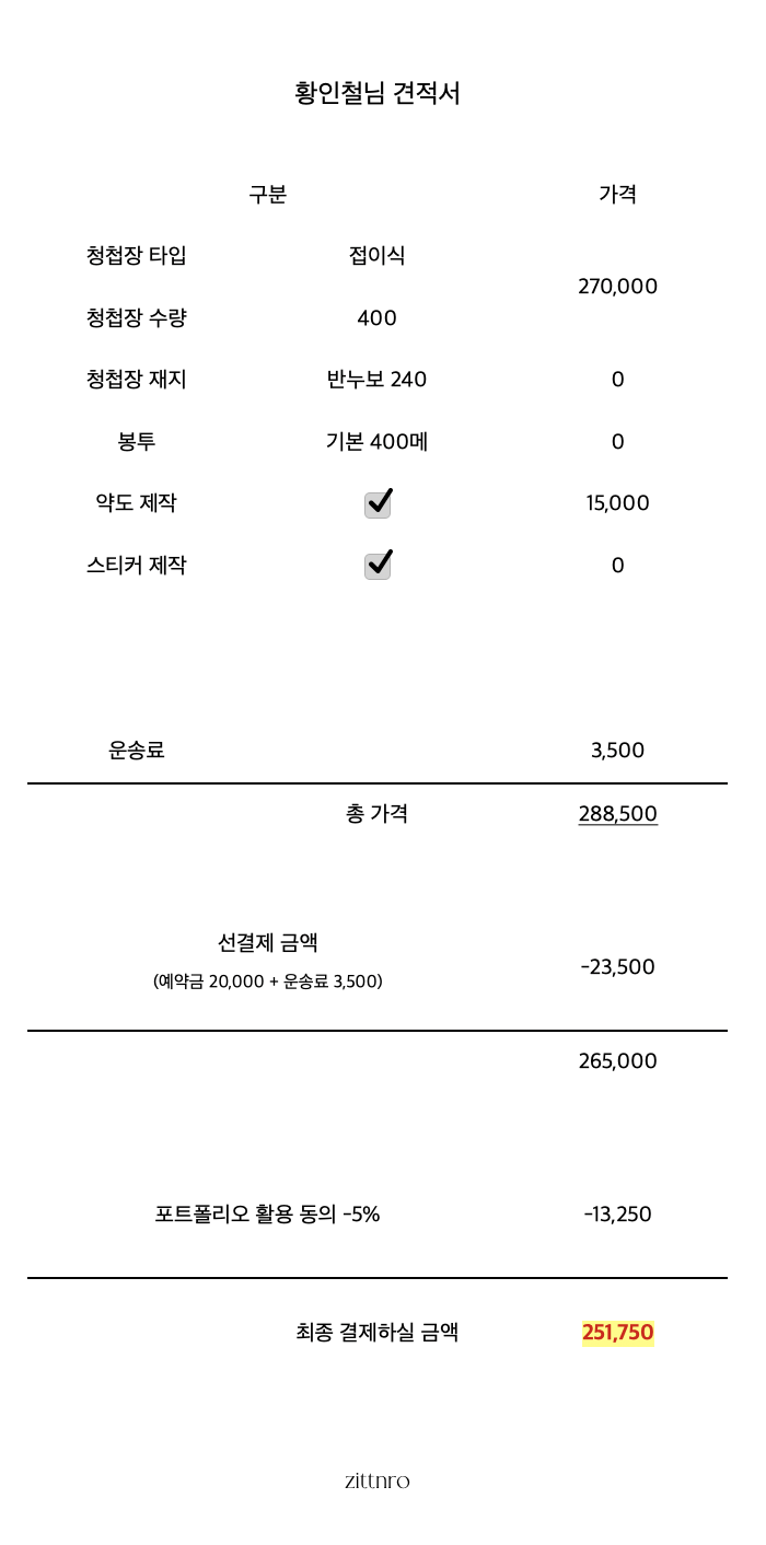 κ²°μ λλ μ΅μ λ° κ²¬μ μ μμΈλ΄μ© νμΈ μλ£ (νμ )