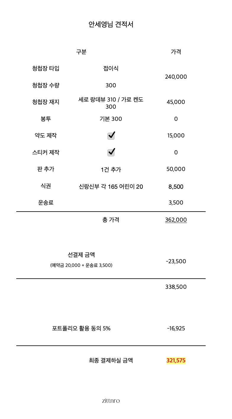 κ²°μ λλ μ΅μ λ° κ²¬μ μ μμΈλ΄μ© νμΈ μλ£ (νμ )